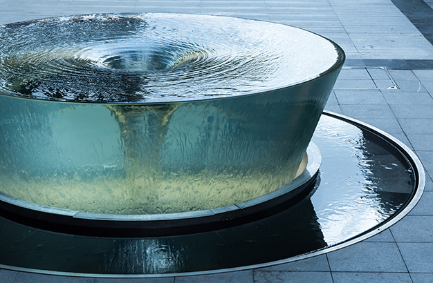 水本無(wú)形,它的物理特性讓它能輕易地跟隨容器而呈現(xiàn)不同的面貌。獨(dú)特的延展性使得水能呈現(xiàn)無(wú)以計(jì)數(shù)的不同效果。燈光的布置,介質(zhì)的紋理,顏色和動(dòng)態(tài)都能給水帶來(lái)無(wú)窮的變化